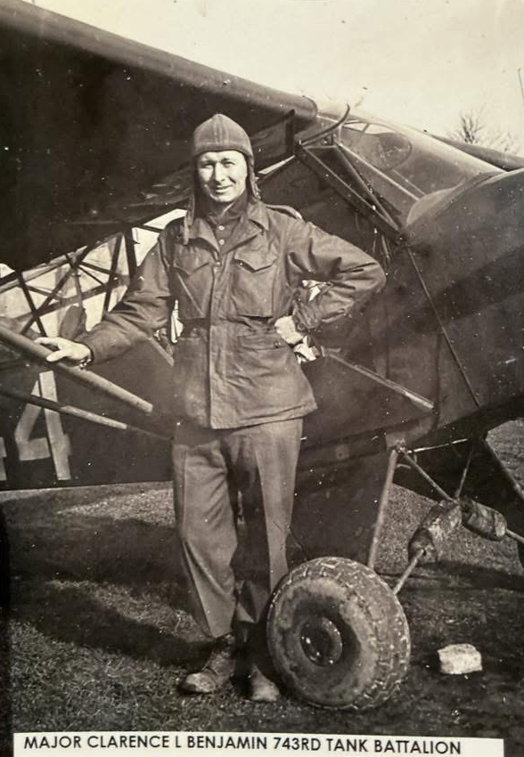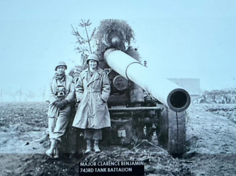 Since the very earliest days of this project, our team has sought more information about Major Clarence L. Benjamin, a pivotal figure in the saga. It was he who said, to the tankers under his command in the 743rd Tank Battalion, “Let’s check out the weird reports of something on the tracks over there.” It was he who lifted his camera when he saw the people at the train — resulting in the photograph all the world now knows.